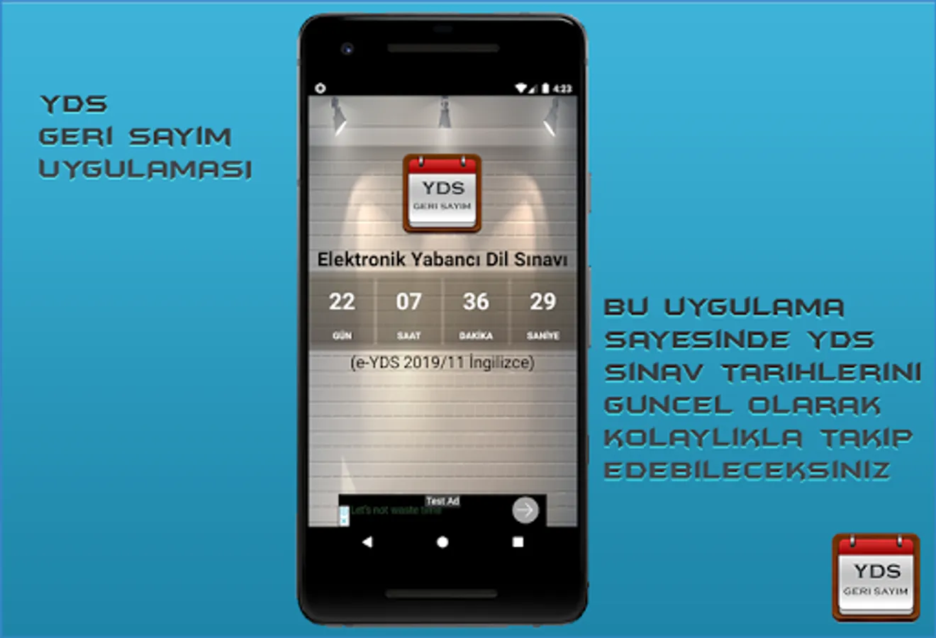 With YDS Countdown Timer, you can follow the time remaining on the exam in the form of Gün Day-Hour-Minute-Second anlık on your phone instantly.