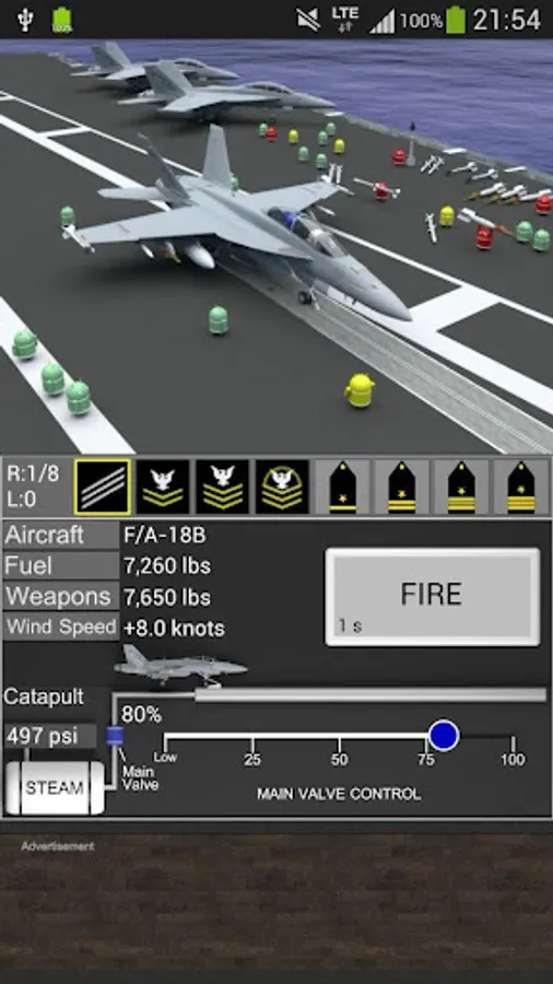 Too much main valve forces the F18 to accelerate too fast and might even rip off the landing gear!