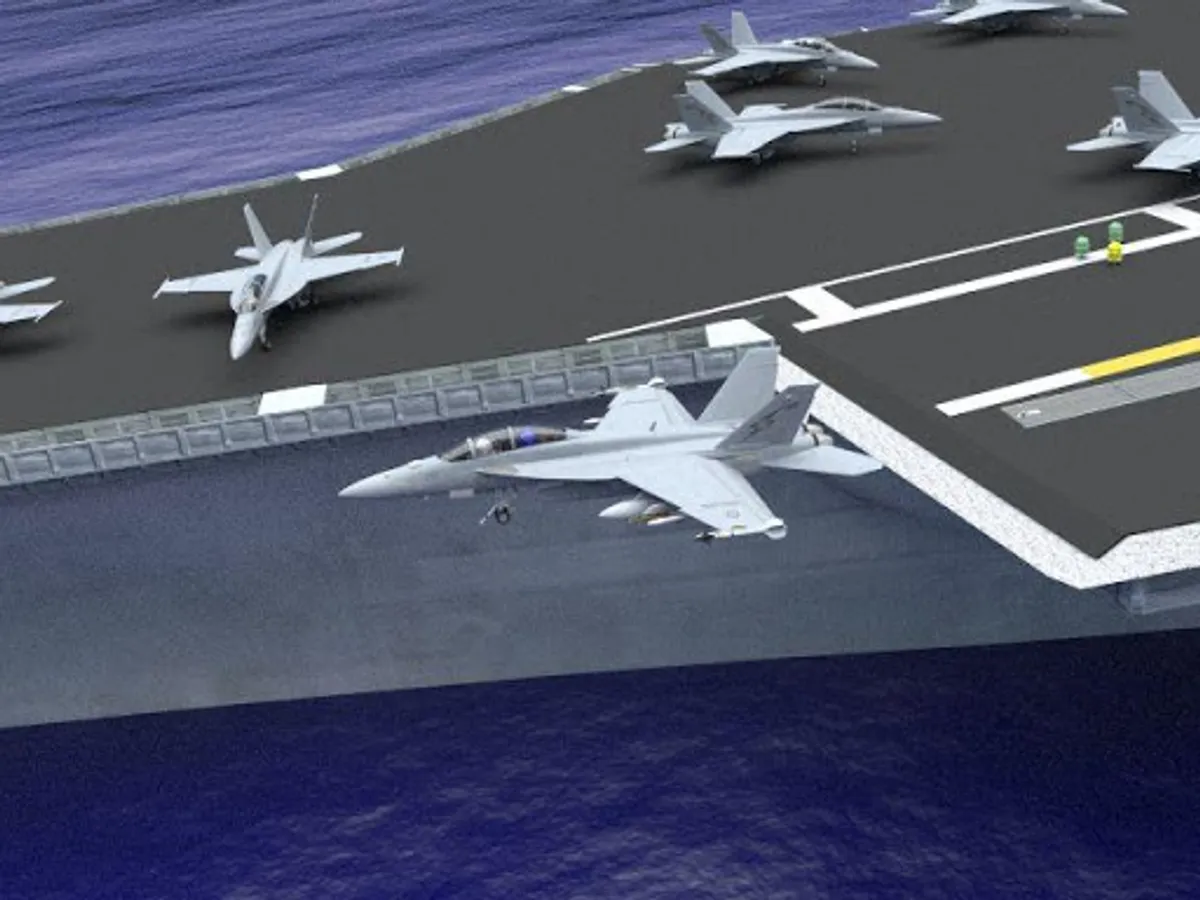 The steam catapult fires the F-18 down the aircraft carrier runway to takeoff speeds.