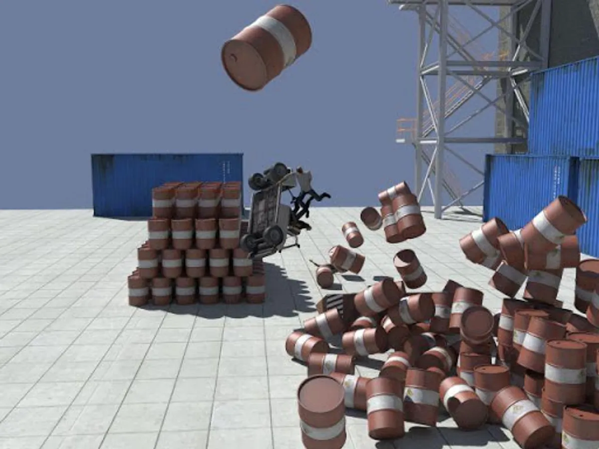 free falls and jumps in a realistic rag doll physics environment.
