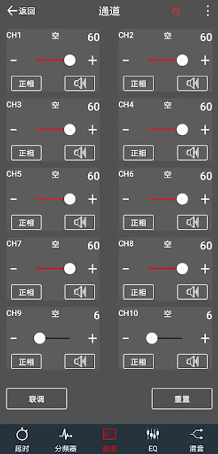 9.Phase adjustment: switchable 0/180 degrees on all output channels