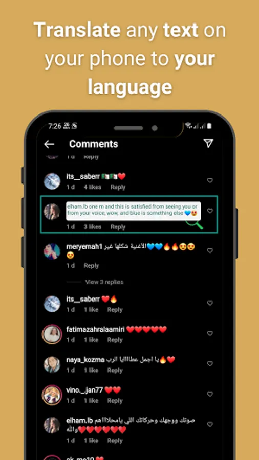 • Chat translator for Instagram: Feature of the app to translate text messages in Instagram to your language and translate outgoing messages to your friend’s in their language.