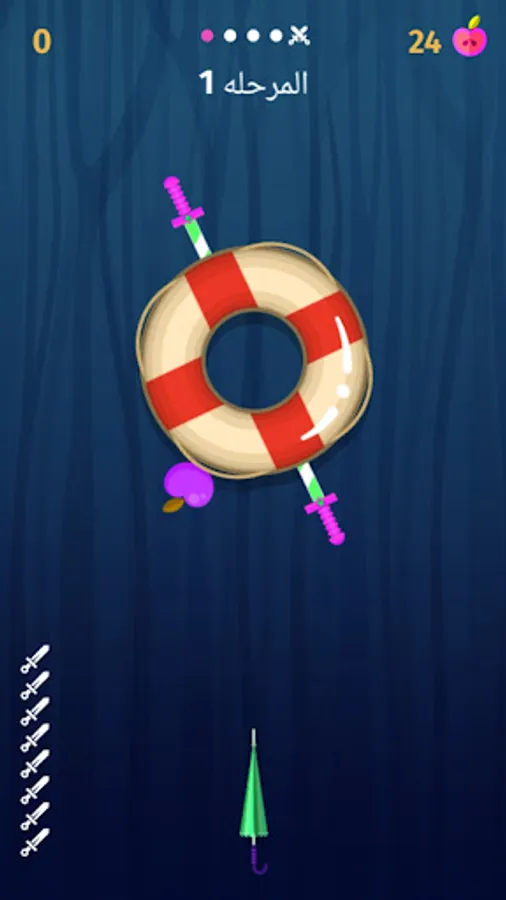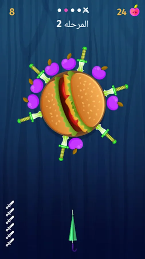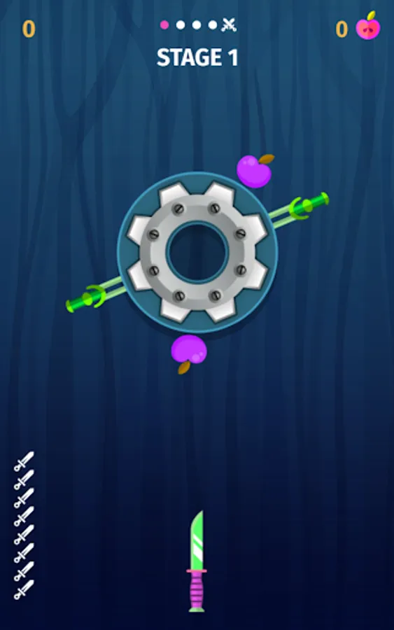 You must hit all the knives without touching any knives to move to the next level.