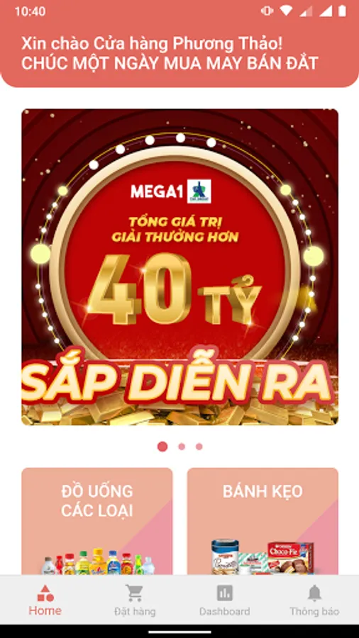 Mega1 SHOP is an application built by the Giga1 Group for retailers and wholesalers, as well as trading partners. On this application, retailers and wholesalers enjoy the convenience of ordering countless benefits: special goods with extremely attractive discounts, with promotions winning thousands of prizes continuously. high value.