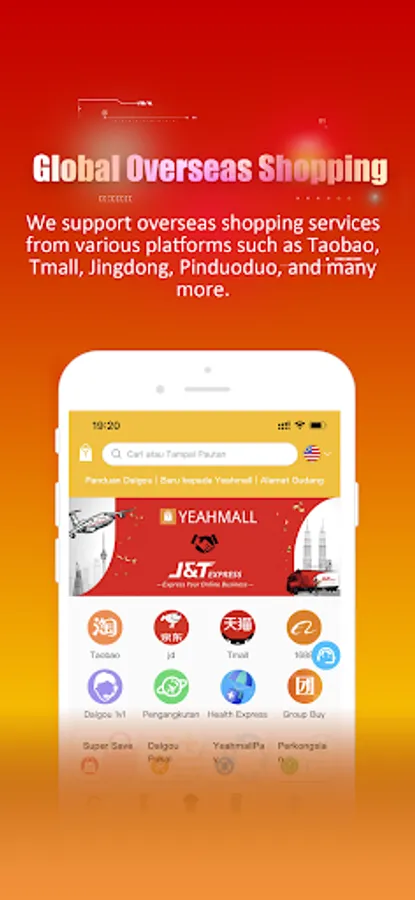 We support overseas shopping services from various platforms such as Taobao, Tmall, Jingdong, Pinduoduo, and many more. You can purchase quality products from around the world through the YEAHMALL app without worrying about language or payment issues.