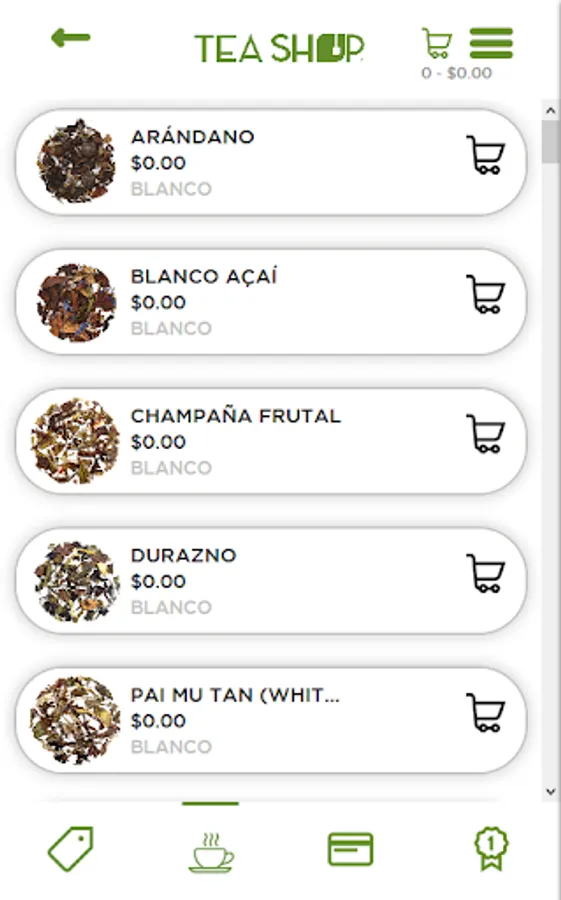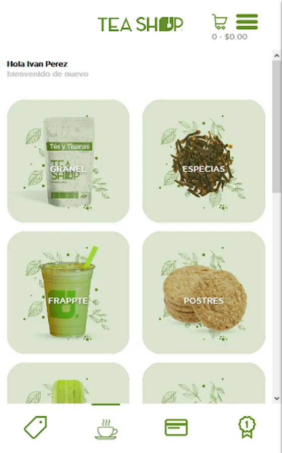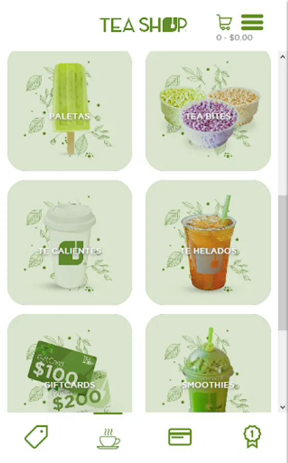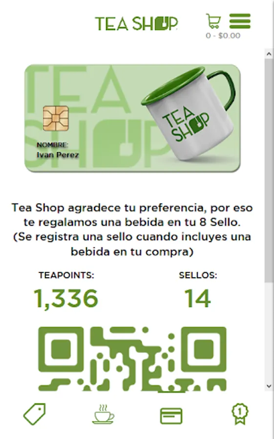 App for the sale of products related to the world of Tea, a loyalty card for digital points, visits and special offers.