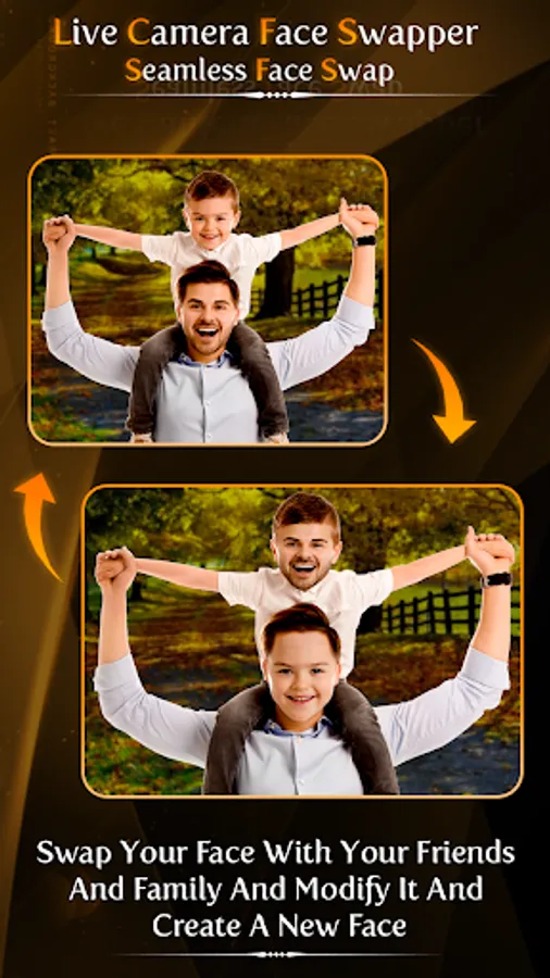 This Live Camera Face Swapper : Seamless Face Swap app help fathers to check when his son how look in his father face and click fun live photos using this.