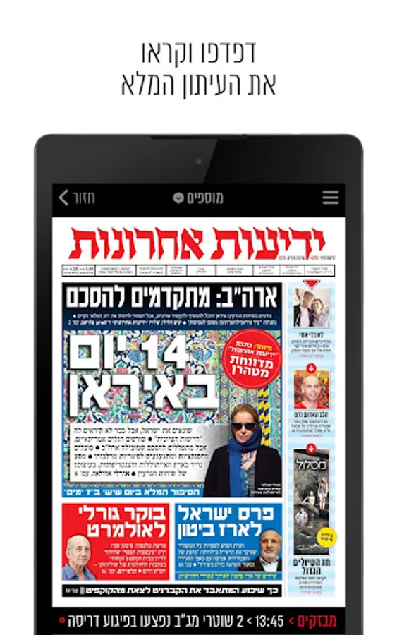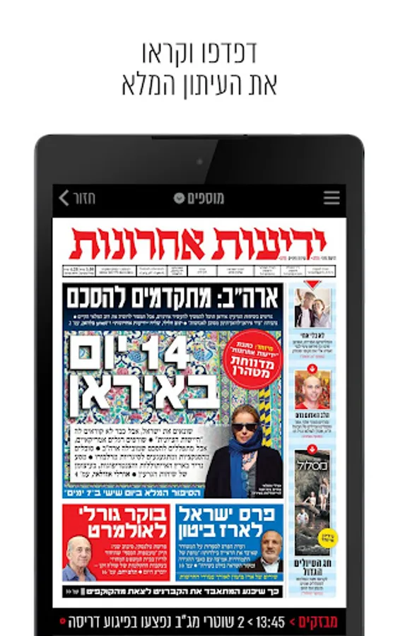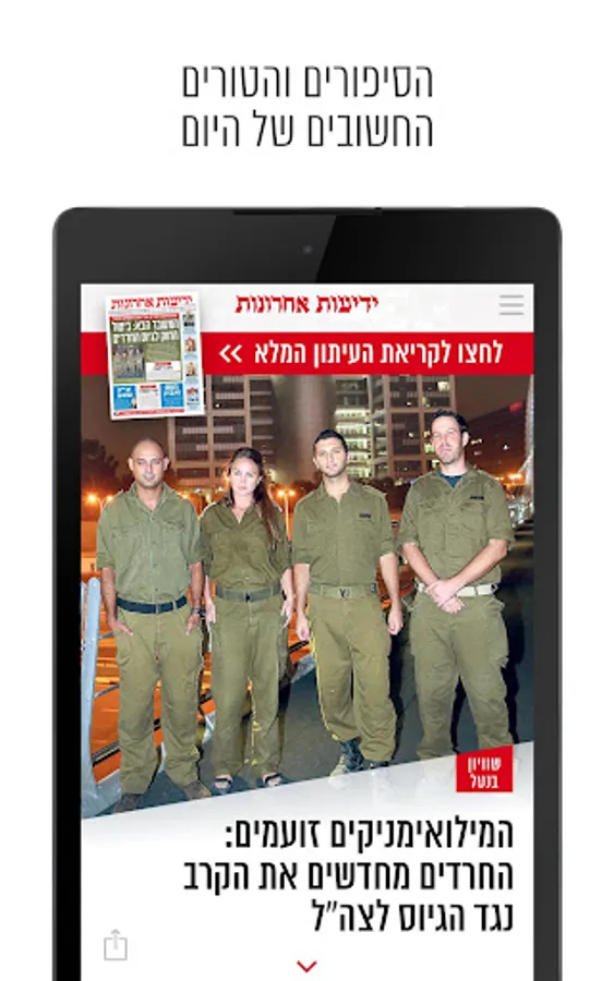 Latest news app, newspaper of the country, with all the news, articles, commentators, columnists, supplements, exclusive interviews and big stories of "Yediot Ahronot" digitally and download.