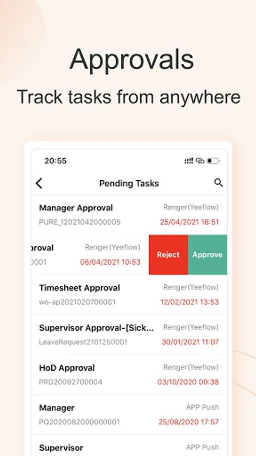 - Check your pending tasks and manage work items inside the mobile app.