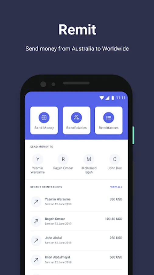• Send money to family and friends anywhere and at any time.