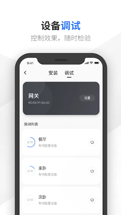 设备配置成功后,提供设备调试模块检验配置效果。