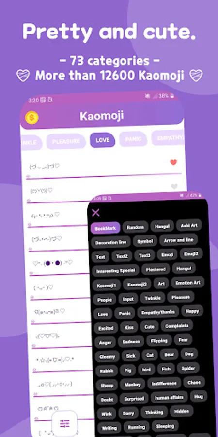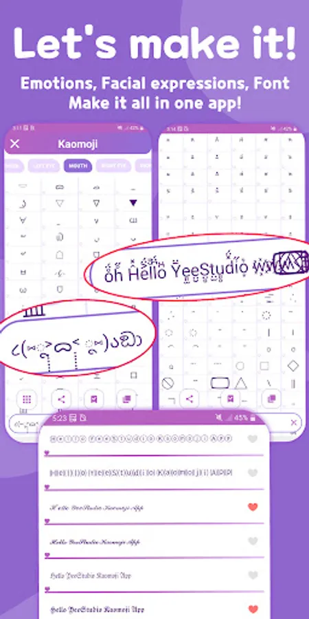 With my own Kaomoji making function, I can make whatever I want! + There's a drawing board, so you can make your own chat emoticons!