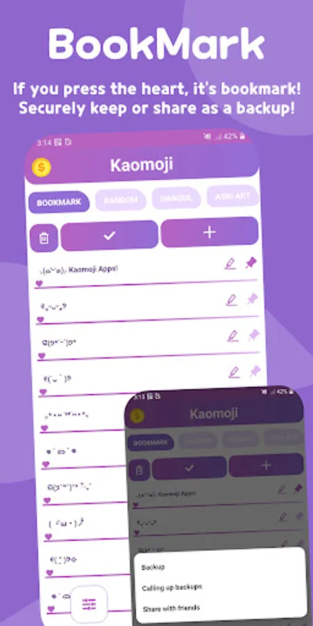 Tap the heart, touch the bookmark, and use it as a copy keyboard