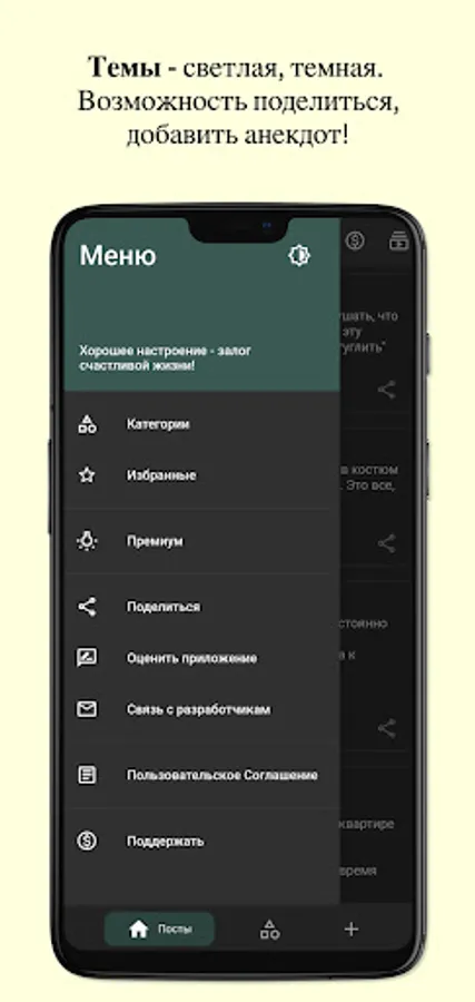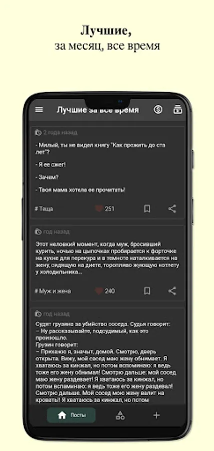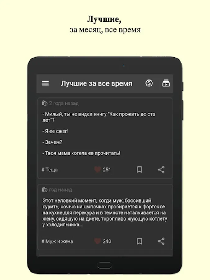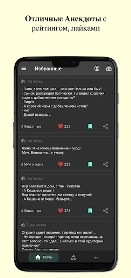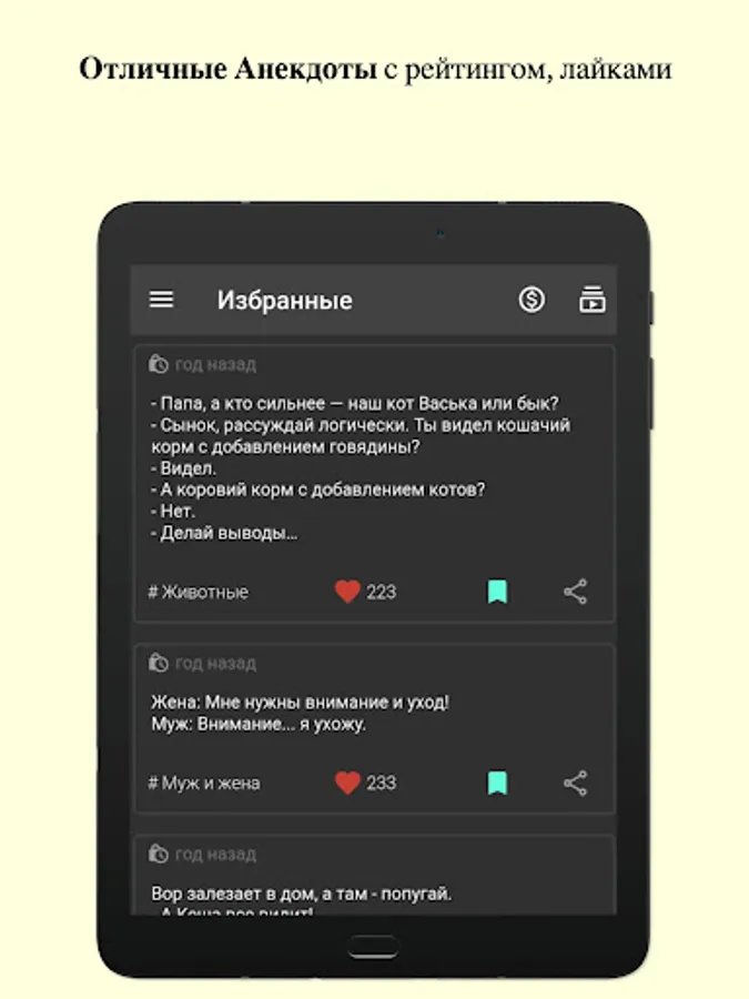 Works via the Internet - jokes are pulled from the server, new ones are added, a real rating of the best.