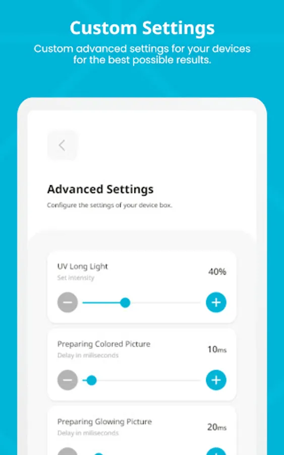 Using Bluetooth or cable, the App gives a series of commands to the box.
