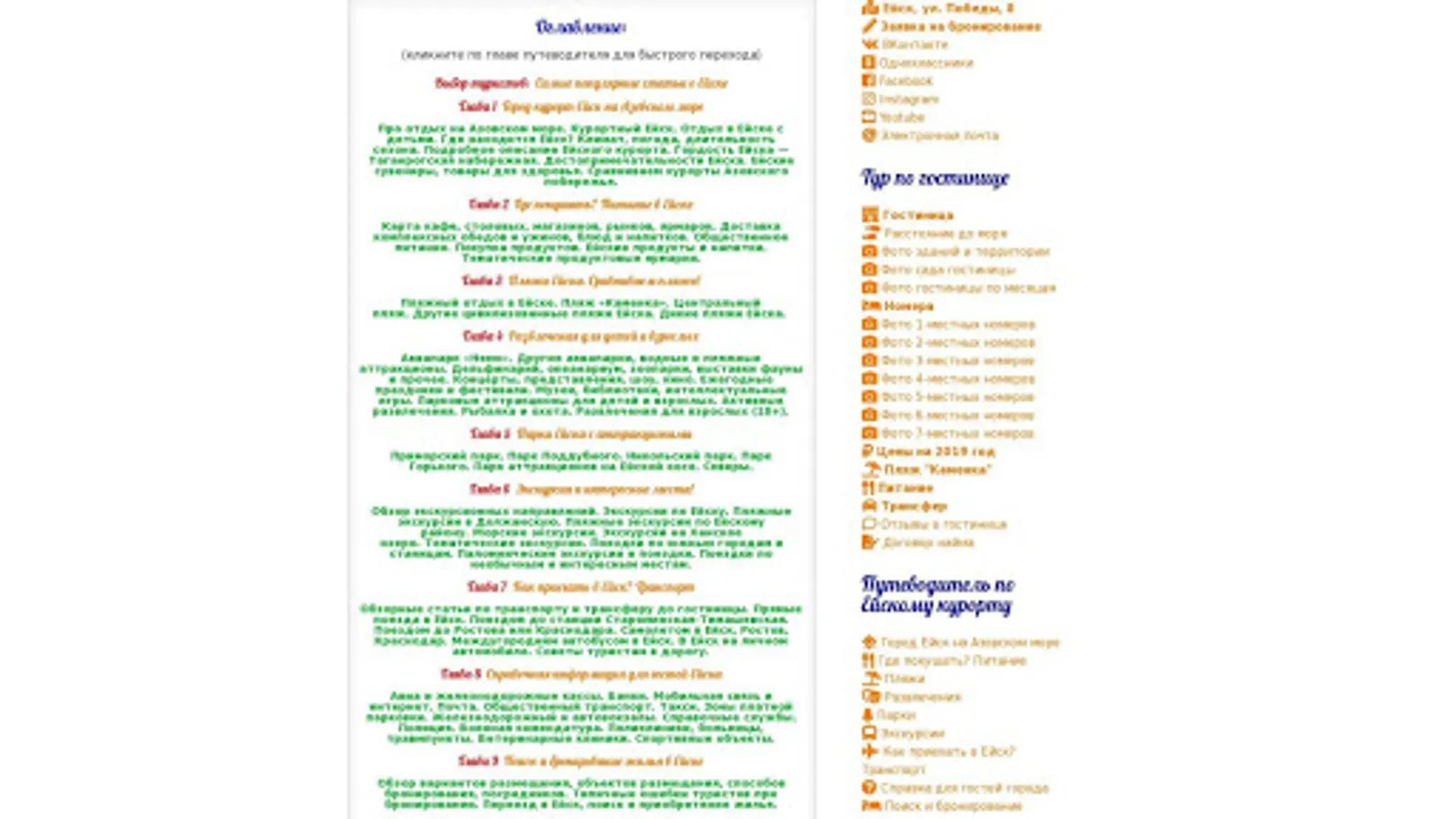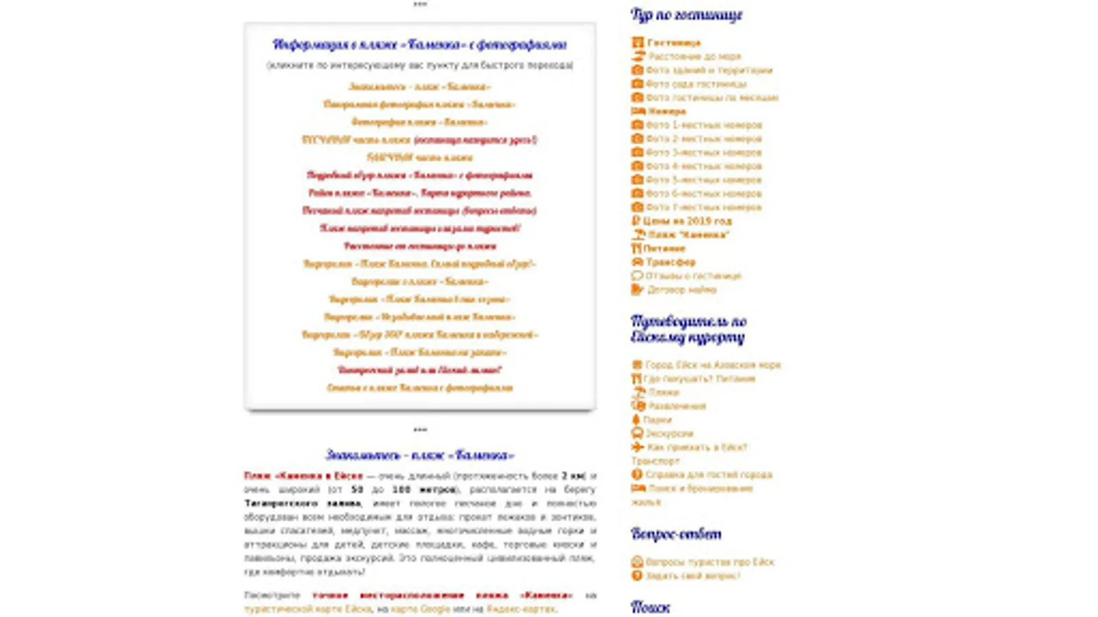 AT YOUR SERVICE A GUIDE TO YAYSK RESORT, it is a huge CATALOG of ARTICLES with photos, videos and maps dedicated to holidays in Yeysk on the Sea of Azov, as well as information about the FAMILY HOTEL "AT THE AZOV SEA" in Yeysk, which is located right by the beach!