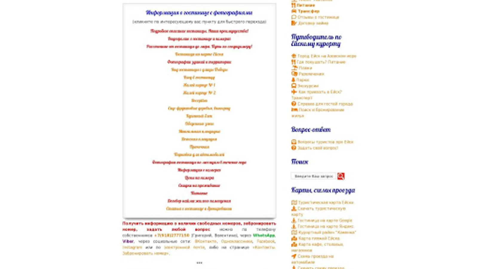 Also at your service are also contacts of the round-the-clock accommodation service for vacationers in Yeysk.