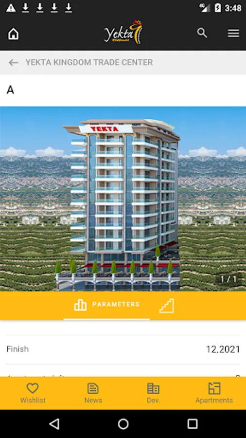 You can view the photos and videos, prices, the completion date, the current status, the number of blocks and floors in this section. You can sort properties in alphabetical order or by price (from low to high or from high to low).