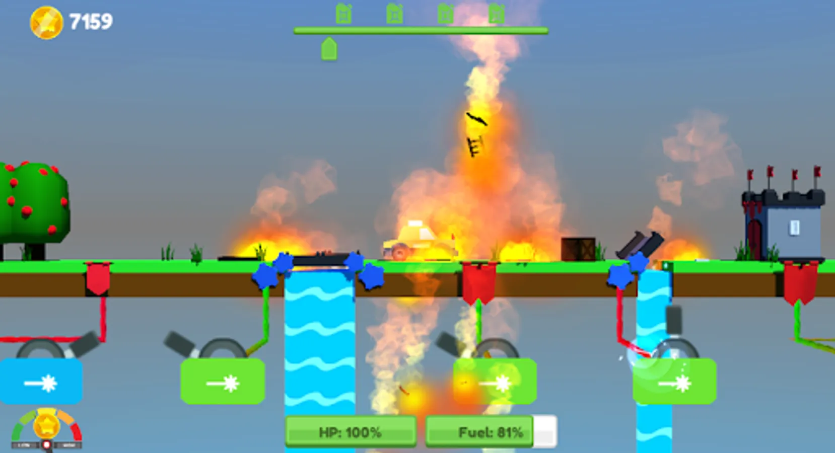 Different obstacles – it’s not only switchable bridges, but also explosive barrels and towers. Explode things that can’t be switched!
