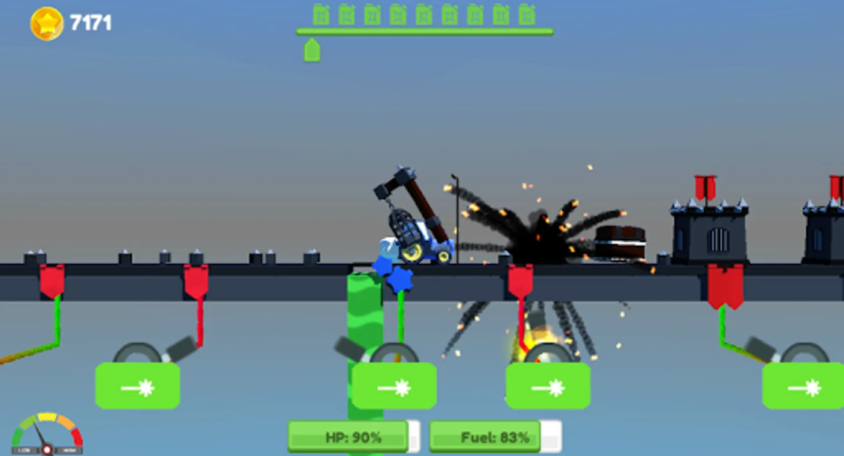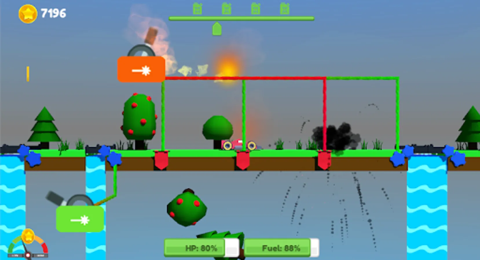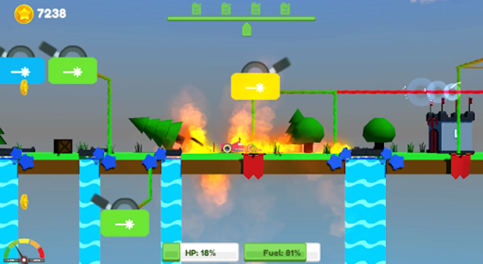 Like runner games? Same as we do! But we tired from one and same concepts of such, so we tried to create something new in genre. Welcome Bridge Switch: Runner Games! Here you have a car riding on a road straight forward. But ahead you will have obstacles – bridges, explosive barrels and towers. Each is connected to switcher that will act: switch bridge (opened / closed), explode barrel, or hit tower to make it explode and free road. Try to accomplish all levels by riding to the end of it!