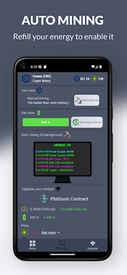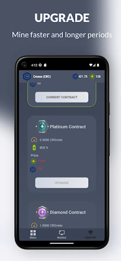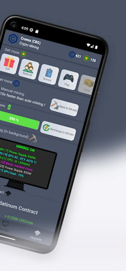 With Cronos (CRO) - Crypto Mining, you can track your mining progress in real time and exchange your earnings directly to your Cronos (CRO) wallet. You can also upgrade your contract to mine CRO even faster and increase your profits. Plus, our app offers a referral program where you can earn additional CRO by inviting your friends and family to join.