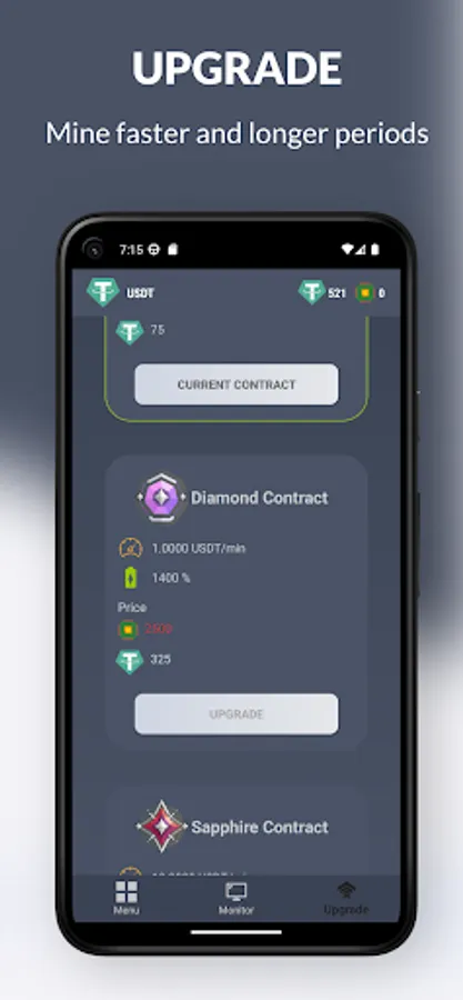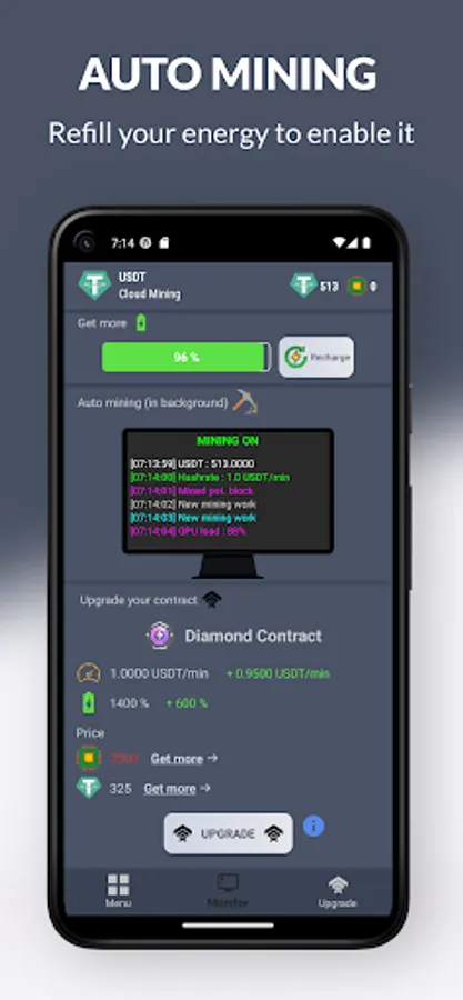 With USDT cloud mining, you can track your mining progress in real time and exchange your earnings directly to your USDT wallet. You can also upgrade your contract to mine USDT even faster and increase your profits. Plus, our app offers a referral program where you can earn additional USDT by inviting your friends and family to join.