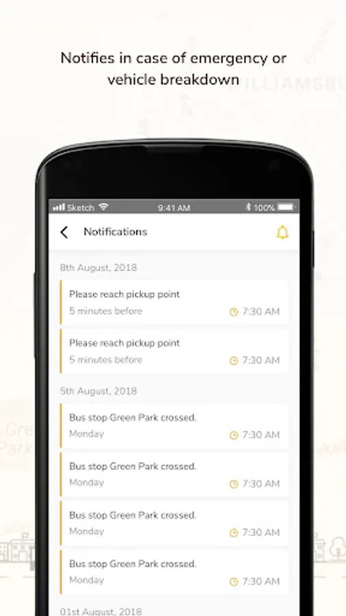 * Bus pick-up & drop stop push-in notification - Get notifications on your smartphone, when your child is picked up or dropped, from or at your desired location.