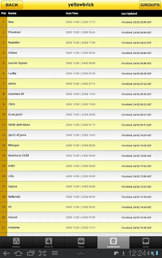 - Quick button to see the leaders in the race