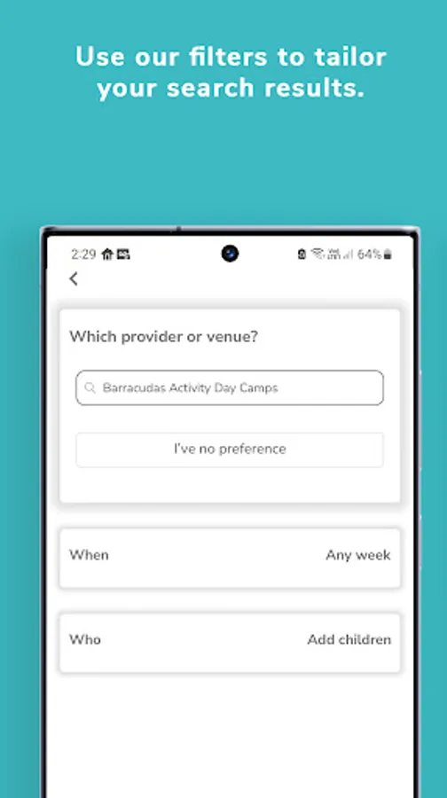 - Parents can compare and book available activities in minutes by location, dates and age, with tailormade search filters like category, extended day options, SEN specialist and tax-free childcare. Booking could not be simpler.