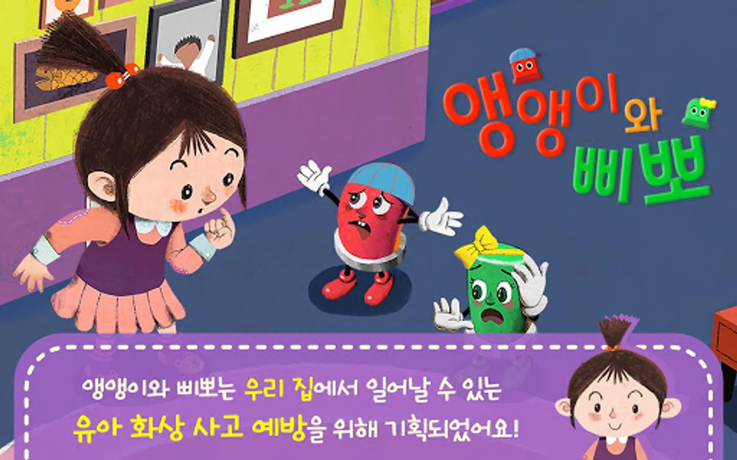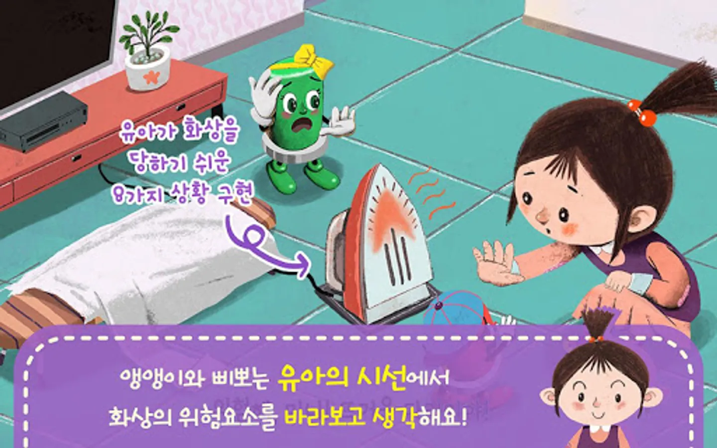 ∨ Anthropomorphic siren characters 'Angione' and 'Pipo' tell the danger of burns at the infant's eye level!
