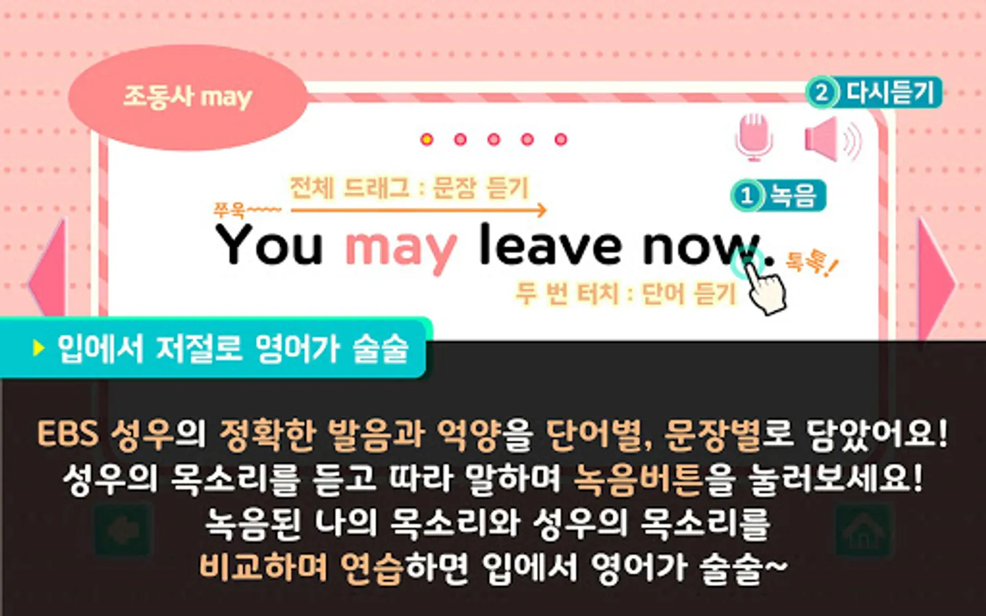 녹음된 나의 목소리와 성우의 목소리를 비교하며 연습하면 입에서 영어가 술술~