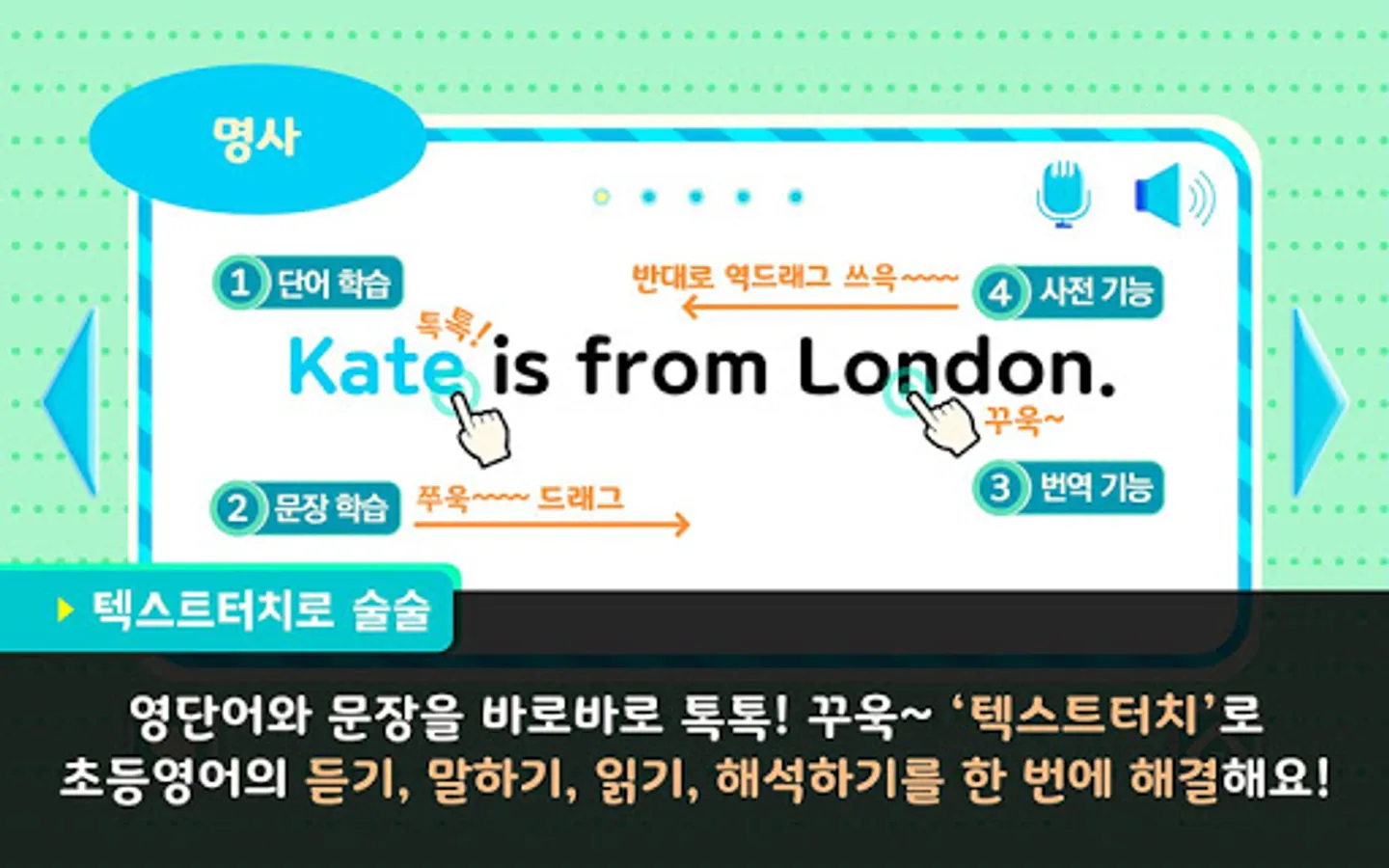 텍스트터치 특허기술 기반 초등 필수 영어앱입니다.