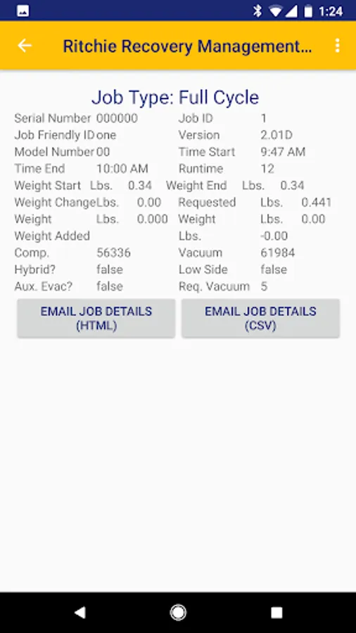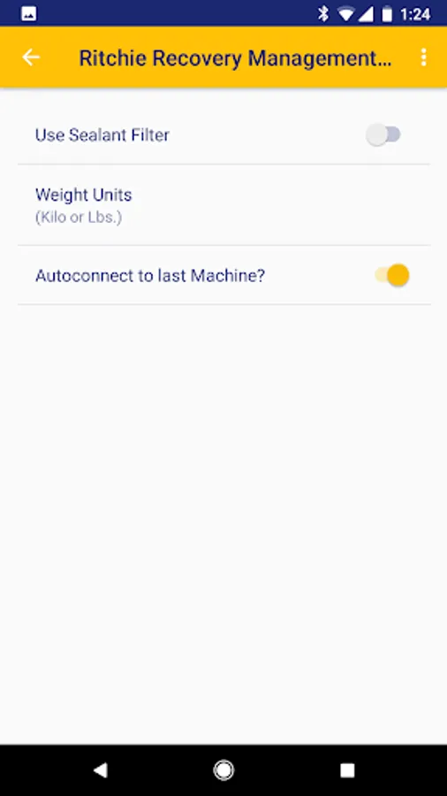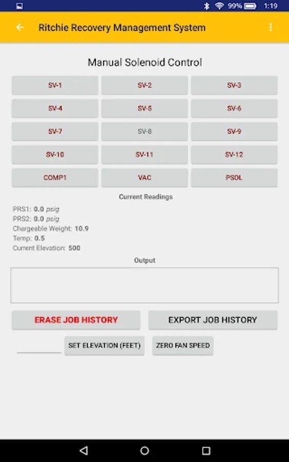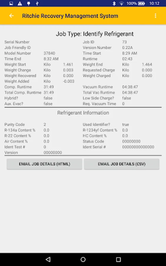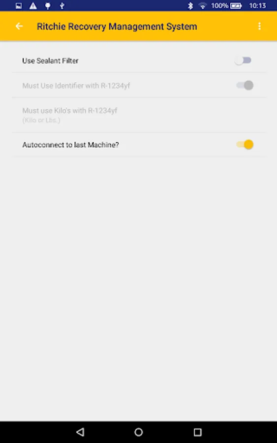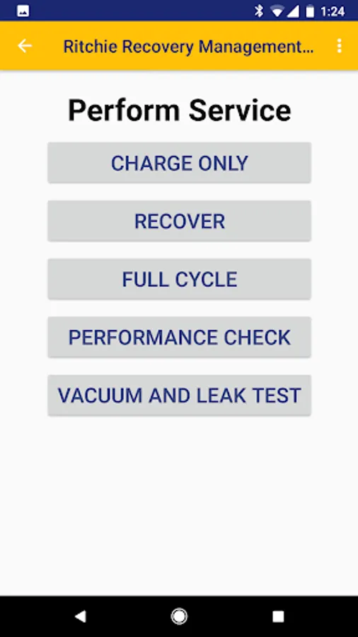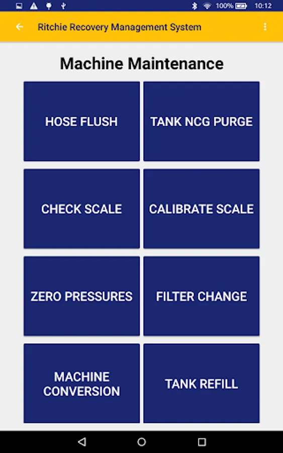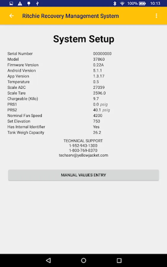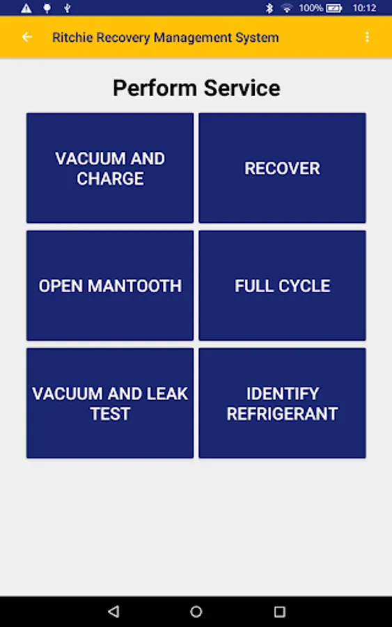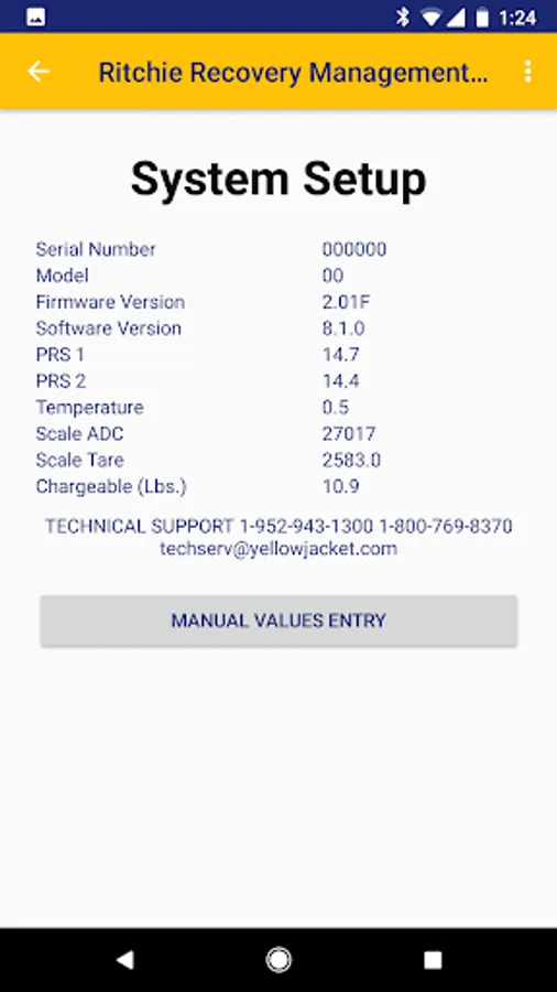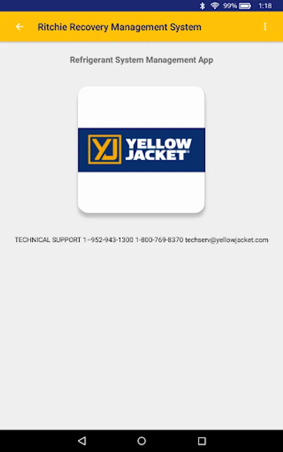 The YELLOW JACKET® RMS™ app provides a wireless graphical user interface with the model 3784x and 3786x Automotive Refrigerant Recovery and Recharge machines (hardware purchase required).
