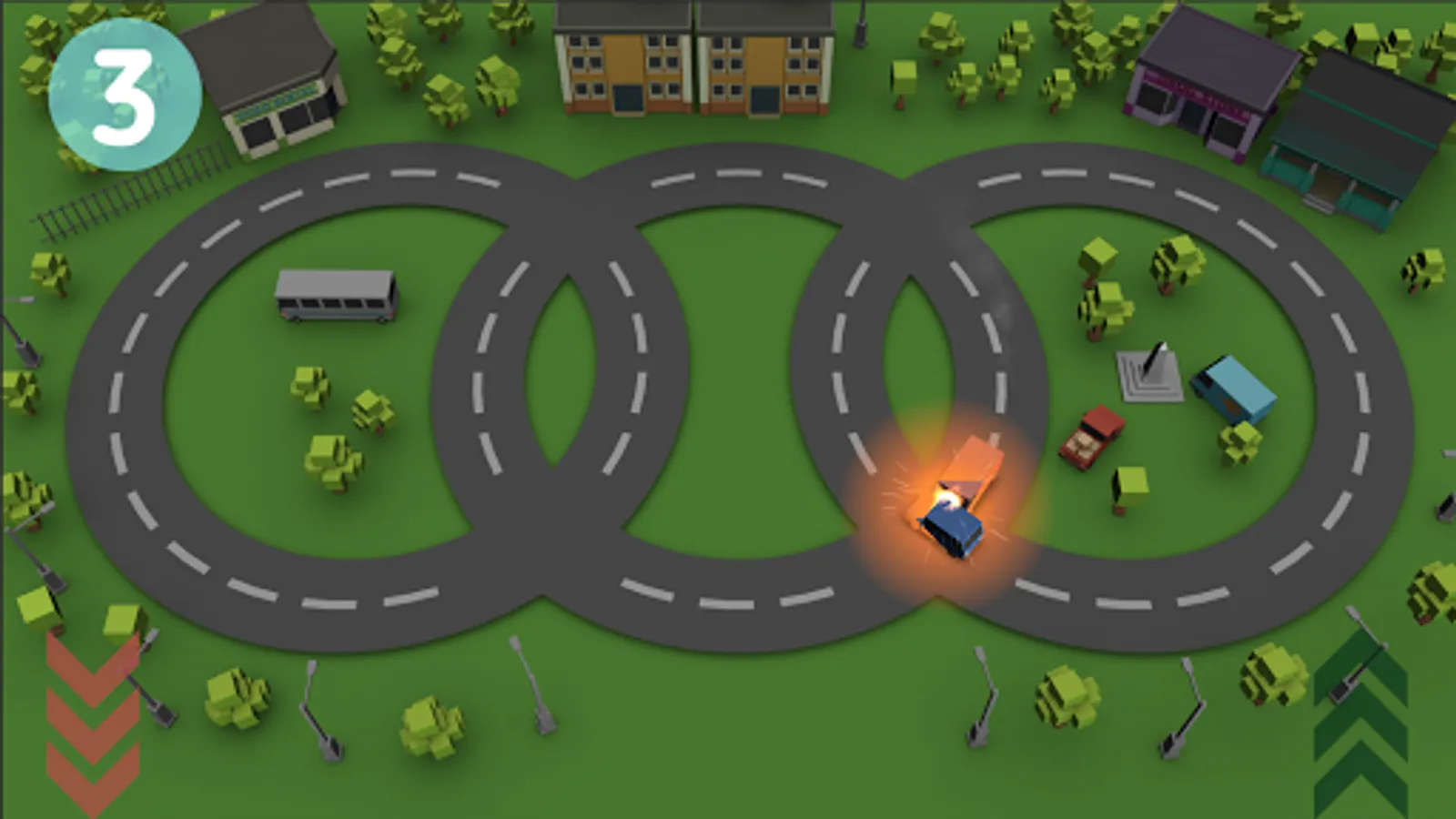 Drive the loop and do not crash. Enjoy the Endless Crash fun on loop drive. All you have to do is control the speed and avoid any crash through every laps.