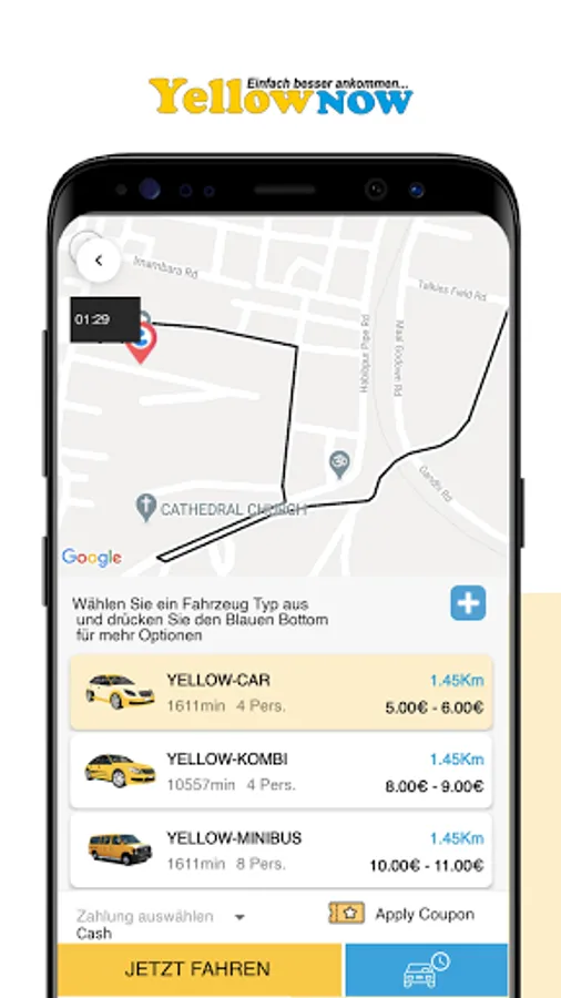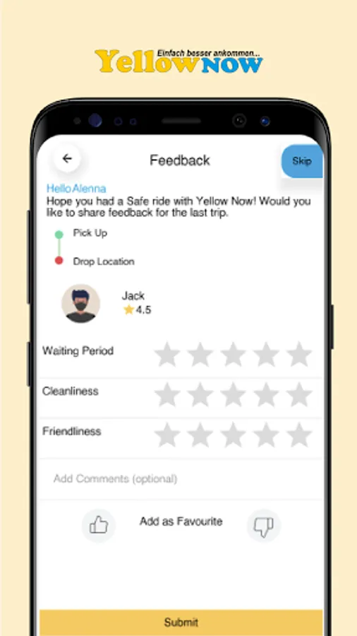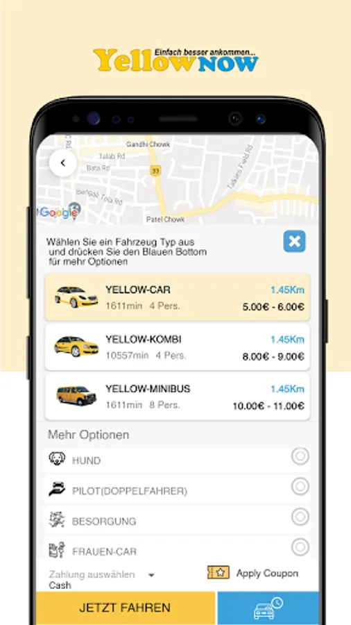 YellowNow is end to end customer application. We’ve established a Door-to-Door Safety Standard to help you feel safe every time you ride.Now travel cashless in your city. Pay by cash, multiple in-app wallets or pay by card, apply Coupons.Find a ride from almost anywhere in your city.