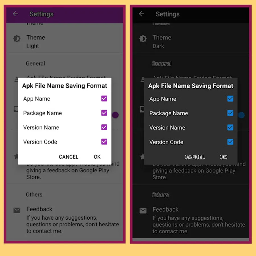 ★ Extracted apk has the name as of App Name/Package Name/Version Name/Version