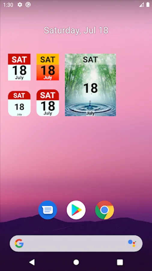 Day Widget shows you different date everyday with tearing your calendar page by page. This is just a very simple calendar widget.