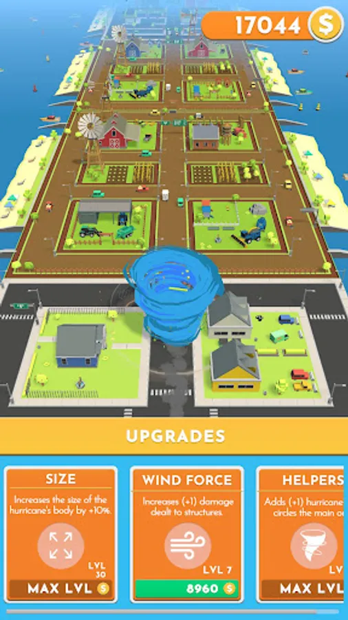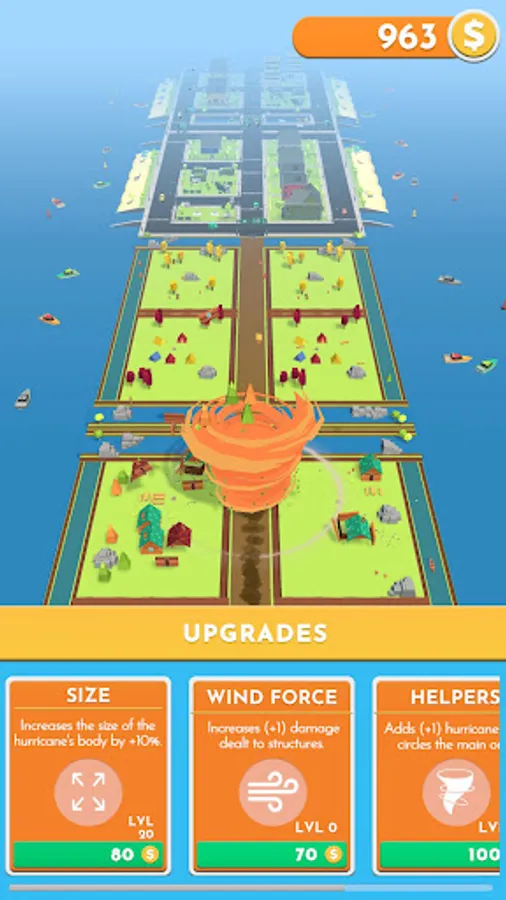 Destroy, earn points and purchase upgrades in order to grow, become stronger and summon smaller helping hurricanes. Start your adventure now! Can you become the greatest?