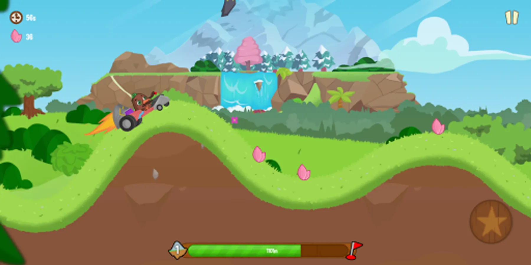 Ride the tuga, Tila, Rhino and Kinn each with their own vehicle. Use your special skills and ram into the air!