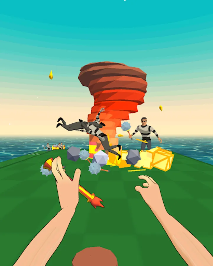 Create powerful tornados that spark with lightning and destroy the pirates ahead. Steal the treasure and sail away in this high quality 3D first person shooter game about magical elemental power merge.
