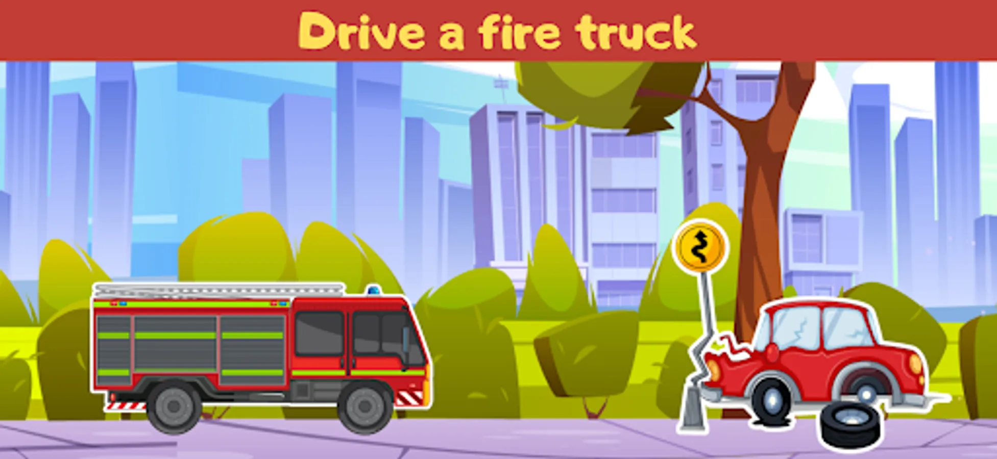 In I'm a little firefighter you can drive a fire truck around the city, looking for situations to save the city. become a firefighter kid driving a fire truck