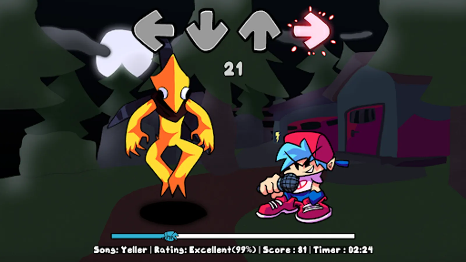 This game works perfectly You can play it using four buttons to create your own unique hit to the music of Rainbow Friends FNF Mod Character.