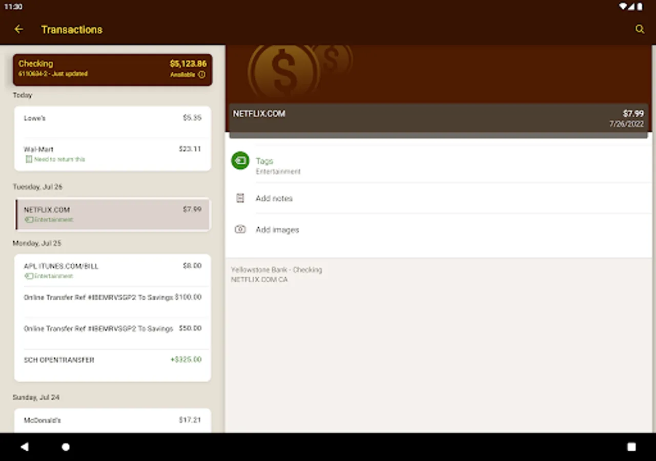Keep your transactions organized by allowing you to add tags, notes and photos of receipts and checks