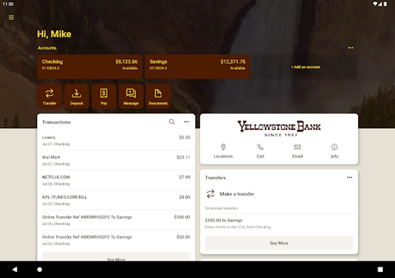 Yellowstone Bank's new mobile app is fast, secure and gives you full access to our banking services!