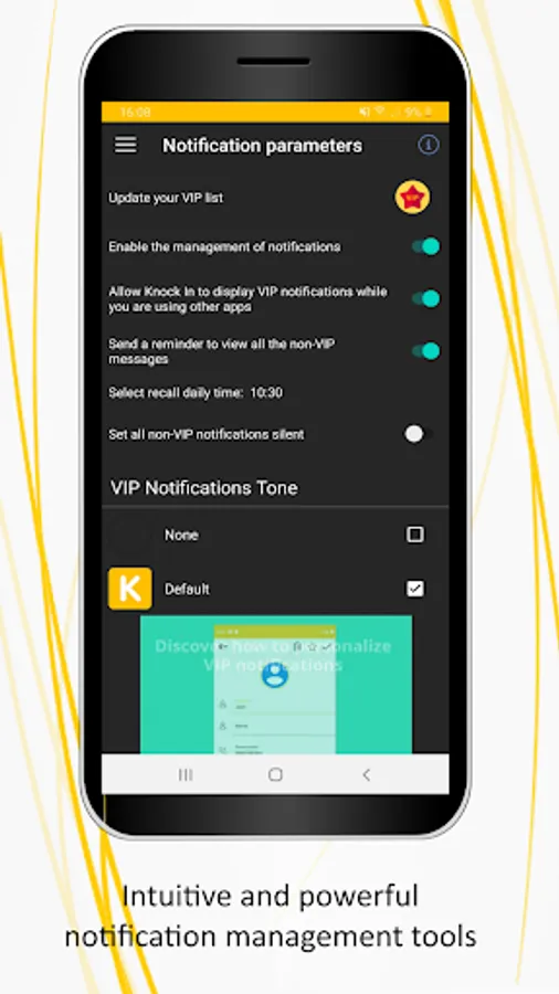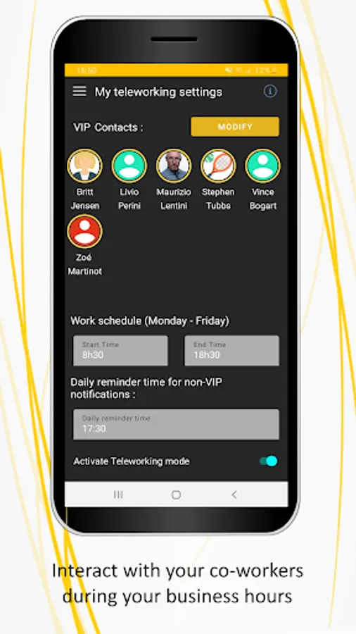 - Personalization options for each VIP: ringtone and working schedule (permanent, business hours, weekend, etc...)