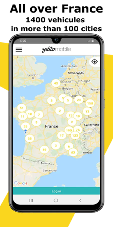 The Yélomobile service is managed by the Citiz network, bringing together car-sharing services present in more than 100 cities in France. Simply ask your Yélomobile agency for access to another Citiz town service and you will be able to access vehicles from all over France via the Yélomobile app.