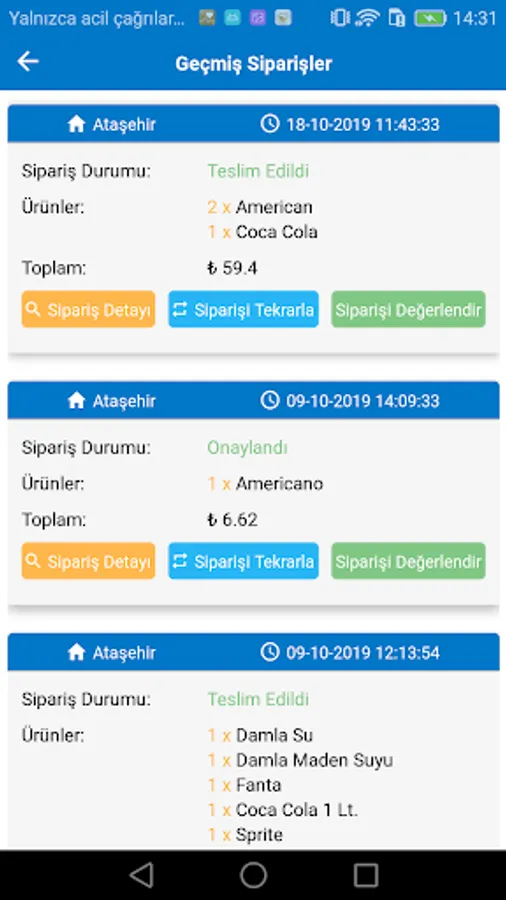 * Display / repeat history orders