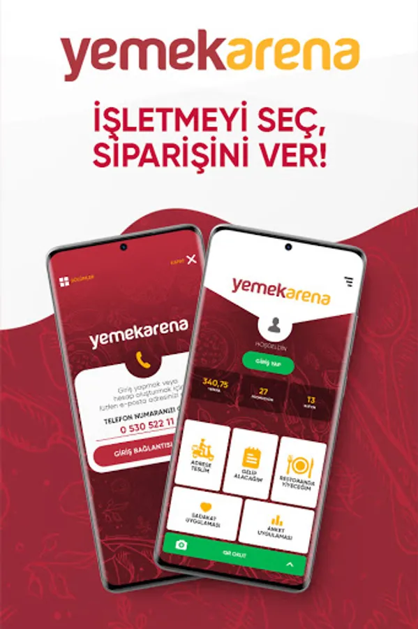 YemekArena is a mobile application for those who are not limited to Takeout services and want to receive them without waiting.