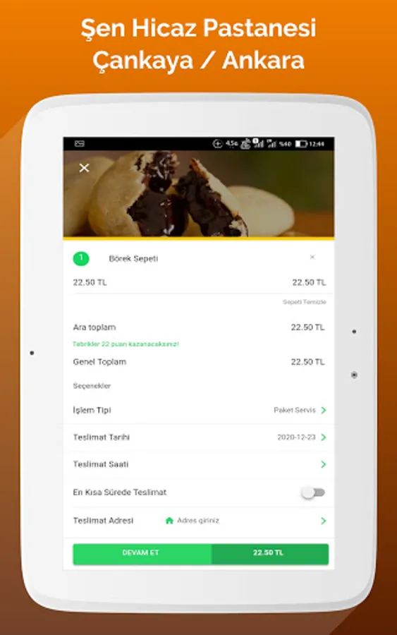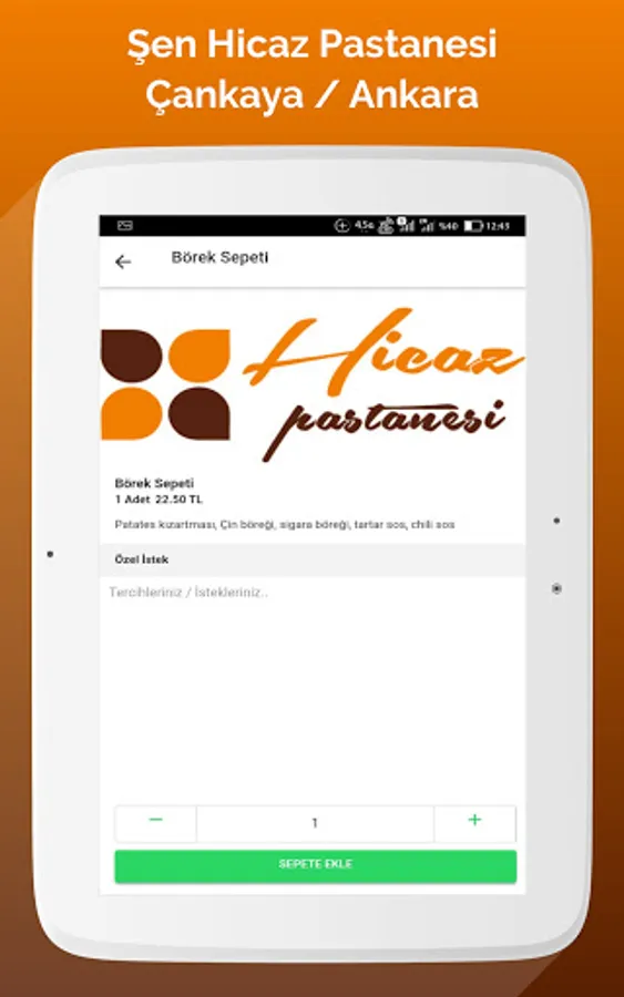 Şen Hicaz Patisserie was created for its customers. Şen Hicaz Patisserie customers can order food quickly, earn points from their orders, and eat discounted meals with the points they earn.