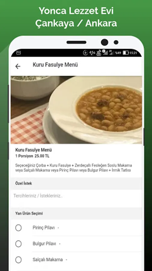 Yonca Lezzet Evi has been created for its customers. Yonca Lezzet Evi customers can quickly place their orders, earn points from their orders, and eat discounted meals with the points they earn.